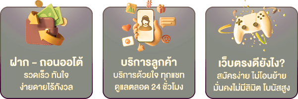 ตอบ : - ระบบอัตโนมัติทำรายการภายใน 30 วินาที - รองรับทุกธนาคารและวอลเล็ท - ไม่มีขั้นต่ำในการฝาก-ถอน - มีระบบตรวจสอบสถานะรายการ